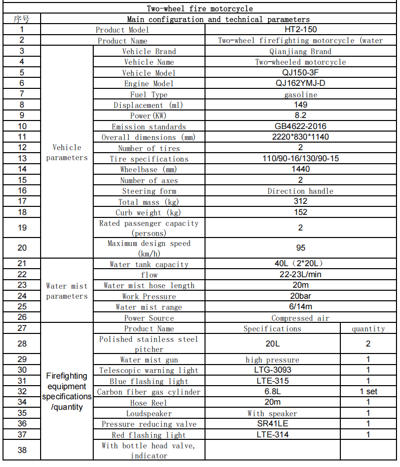 Кузов транспортного средства небольшой (обычно около 2 метров в длину и около 0,8 метра в ширину) и может легко перемещаться по узким улочкам, переулкам в старых городских районах, пешеходным улицам, живописным горным дорогам, городским деревням и другим местам, куда не могут добраться большие пожарные машины, решая проблему противопожарной защиты на «последней миле».